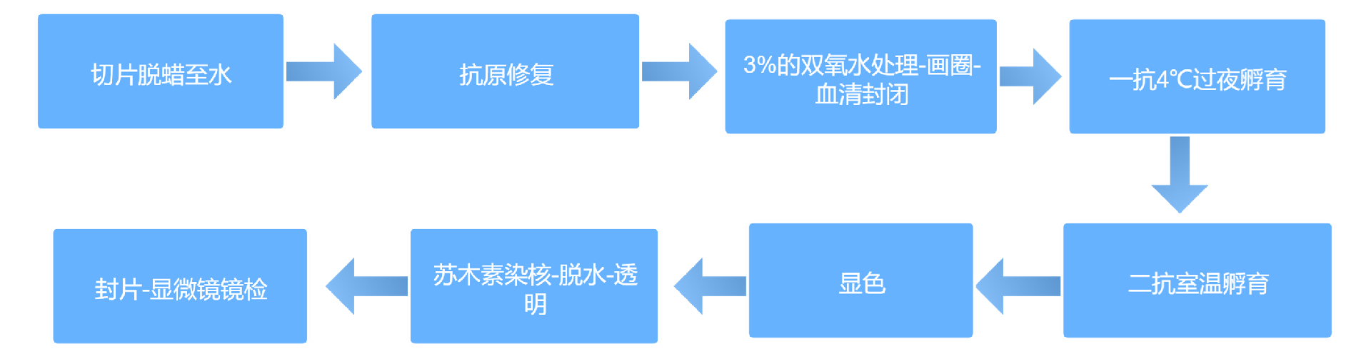2. DAB显色时间需要达到最优化,镜下观察达到阳性染色明显但背景不太深。